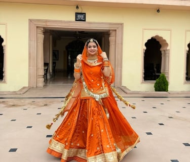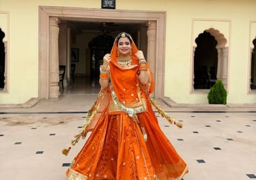 High-quality Rajputi Poshak, Sarees, and ethnic wear crafted with fine fabrics and detailed traditional work for a stunning look.